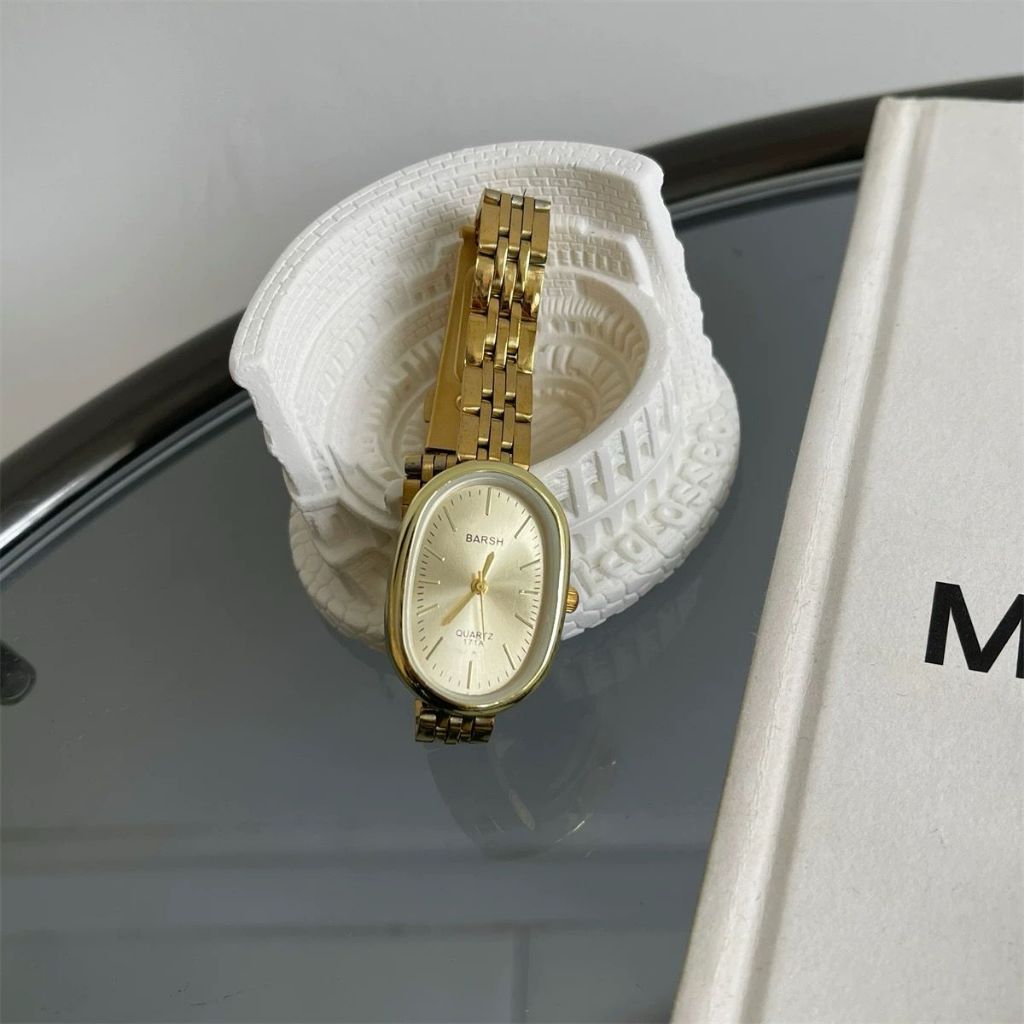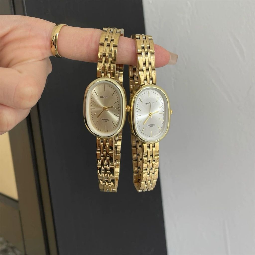 KOOLEY Jam Tangan Wanita Analog Vintage Watch Bentuk Oval Barsh Rantai Stainless Elegant Mewah 90ld BS12
