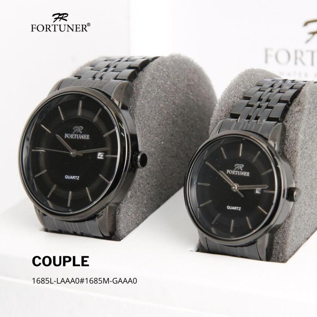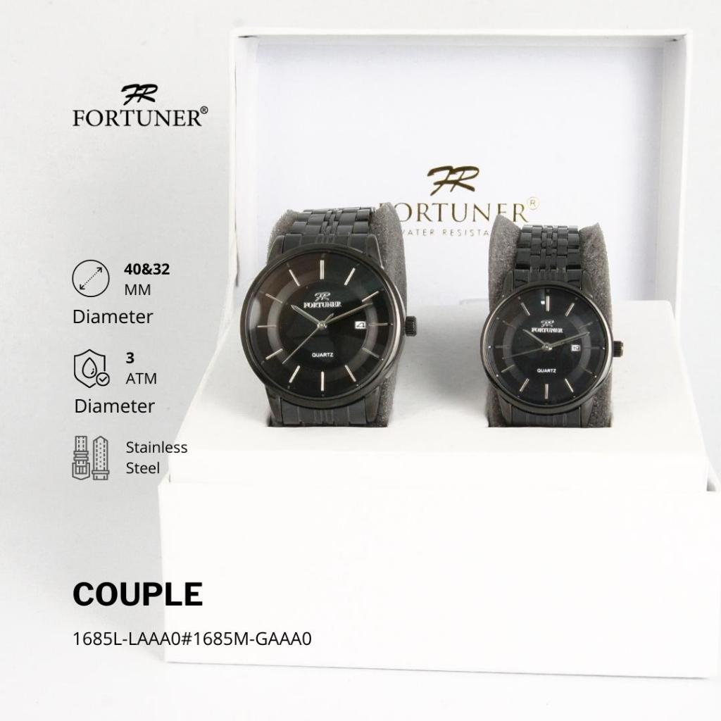 Fortuner Arloji Couple Jam Tangan Analog Tahan Air Water Resistant Rantai Stainless Celestial Hitam