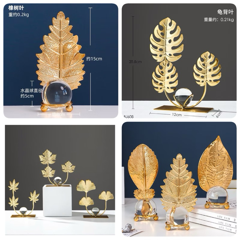 Bola Kristal Leaf Daun Gingko Turtle Mewah Aesthetic Pajangan Crystal Dekorasi meja besi Hiasan
