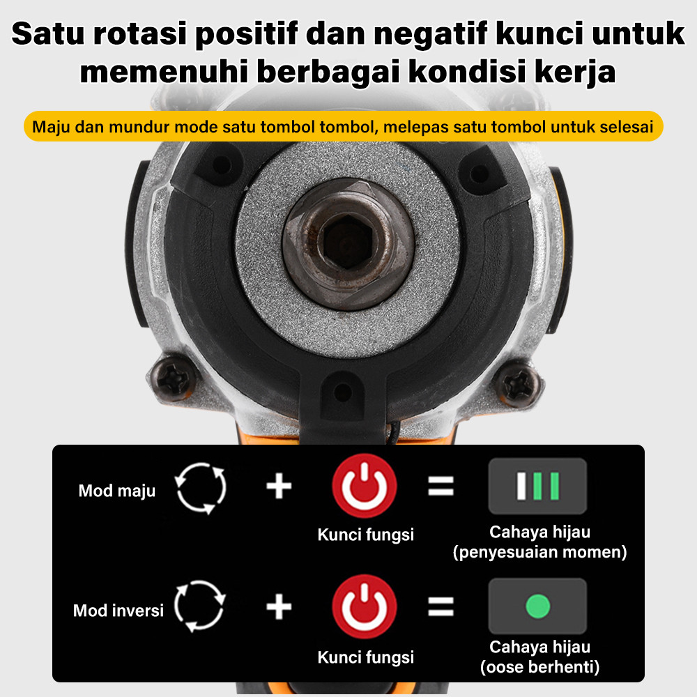 NEXOR Brushless Impact wrench 1000NM Cordless Mesin bor 688VF baterai Impact torsi besar Spanner kit - Dpm96