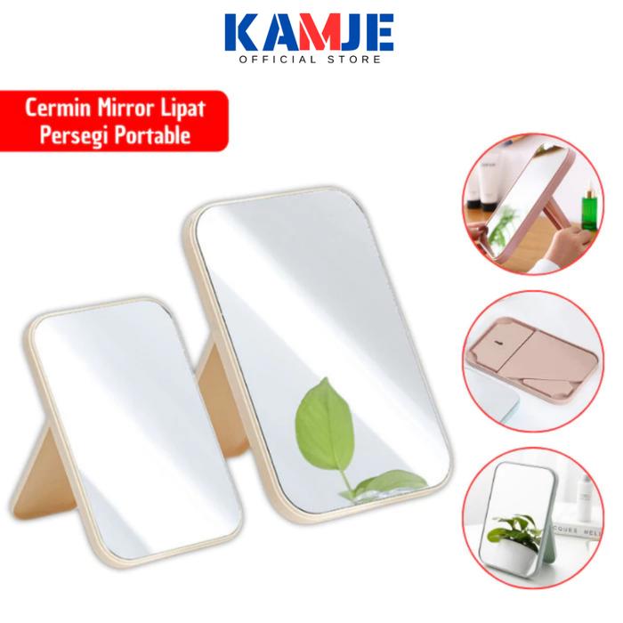 KAMJE Cermin Make Up Mini Lipat Aesthetic Persegi Portable untuk Skincare Touch Up Traveling KMJ070 - HIJAU