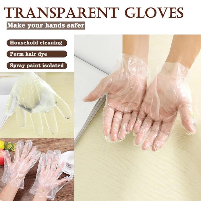 KAMJE Sarung Tangan Plastik Isi 100pcs Disposable Gloves Tebal Transparan KMJ008