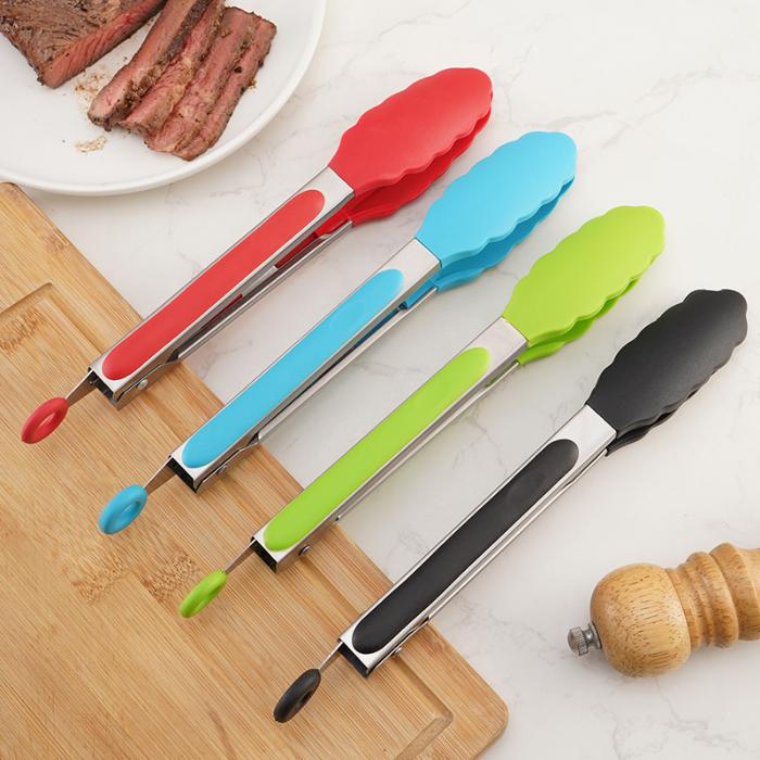 KAMJE Capitan Penjepit Makanan Gorengan Anti Panas Silicon Silikon Utensil Stainless