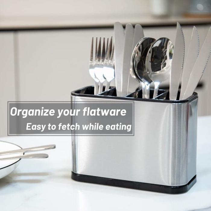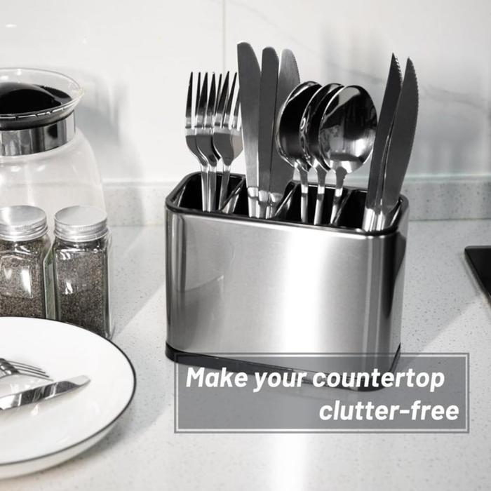 KAMJE Tempat Sendok Garpu Stainless Steel 4 Slot Rak Alat Makan Dapur Anti Karat Modern Elegan KMJ7265 - Silver