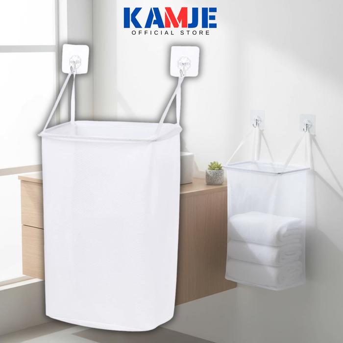 KAMJE Keranjang Gantung Pakaian Kotor Laundry Basket Kain Mesh Wall Mounted Hemat Ruang Anti Bau - Putih