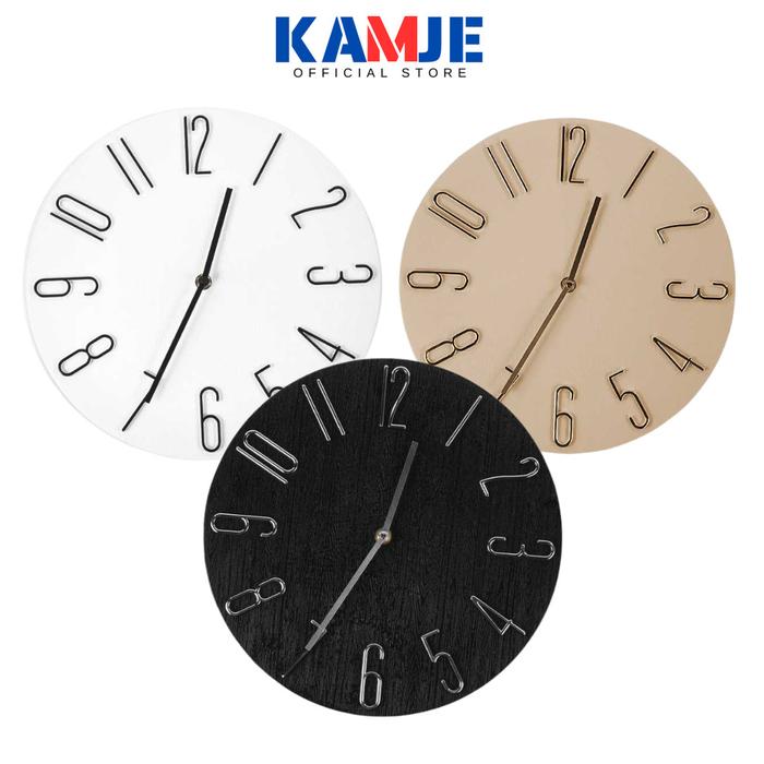 KAMJE Jam Dinding Quartz 30cm Desain Klasik Elegan Modern Silent Sweep Tanpa Bunyi KMJ7196 - Hitam