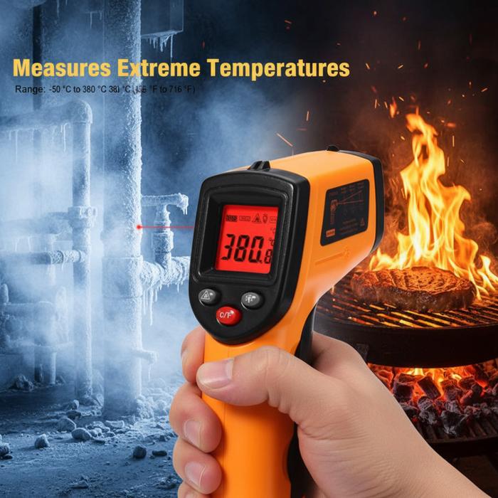 KAMJE Thermogun Thermometer Infrared Laser Industrial Non Contact Termometer Suhu Digital Akurat - Orange