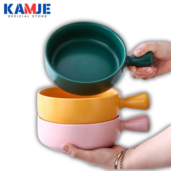 KAMJE Mangkok Keramik Nordic Style Bowl Estetik Minimalis Tahan Panas untuk Mie, Sup, dan Sereal - Hitam