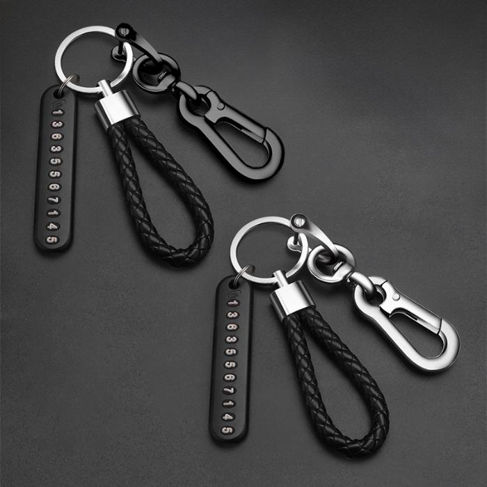 KAMJE Gantungan Kunci Keychain Set Mobil Motor Buckle Dengan Tag No HP Nomor Handphone 3in1 - HITAM