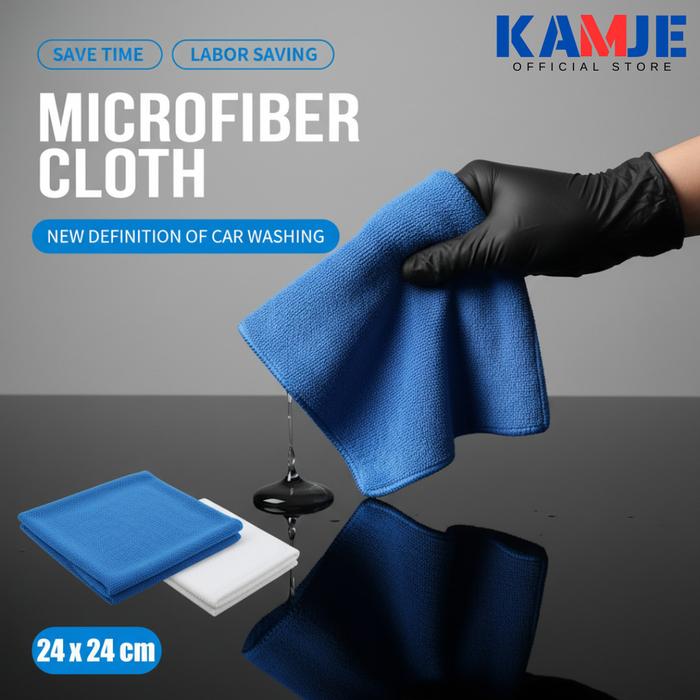 KAMJE Kain Lap Microfiber Serbaguna 24x24cm Pengering Cepat Dapur Kendaraan Mobil Motor Anti Gores - Putih