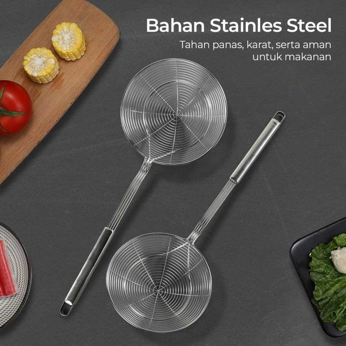 KAMJE Sendok Saringan Gorengan Stainless Steel Anti Karat Alat Masak Dapur Serbaguna Skimmer Utensil Silver