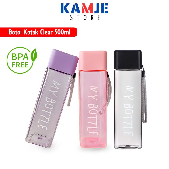 KAMJE Botol Minum 500ml My Bottle Kotak Petak Persegi Clear Transparan BPA Free - HIJAU