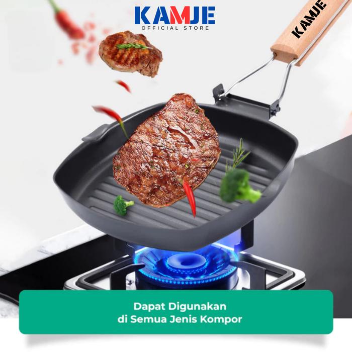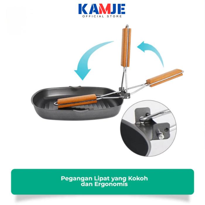 KAMJE Panci Wajan Teflon Panggangan Pemanggang BBQ Anti Lengket Square Grill Pan Foldable KMJ060