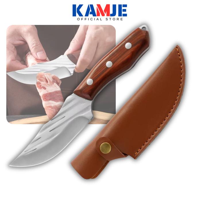 KAMJE Pisau Daging Stainless Steel 4Cr13 Forged Butcher Knife Tajam Anti Karat Premium KMJ7214 - Brown Silver