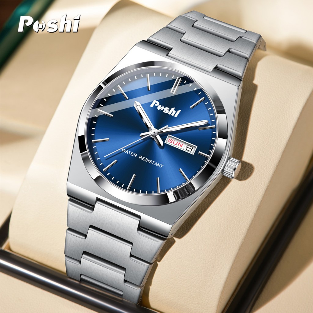 POSHI Jam Tangan Pria Fashion Kasual Bisnis Stainless Steel Quartz Calendar Anti Air Watch PS979
