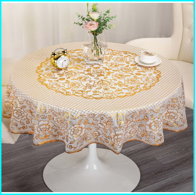 Taplak Meja Tamu Bulat Ukuran Diameter 132cm Motif Bunga Aesthetic Bahan Pvc Waterproof Anti Air-d-t