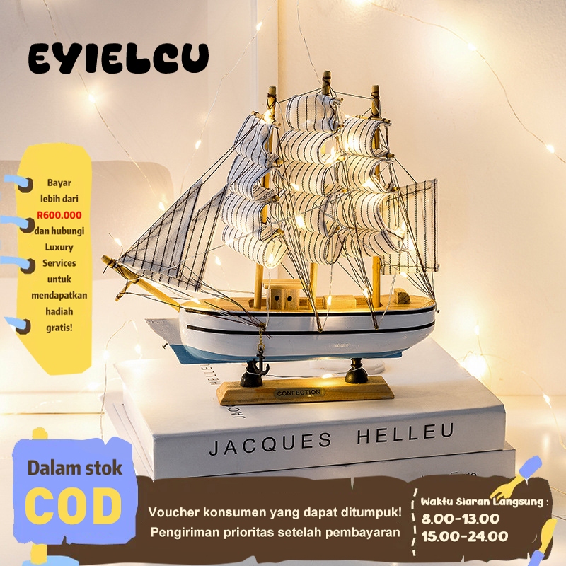 Eyre(Jaminan kualitas ☺)23cm Model perahu layar kayu kerajinan ruang tamu kantor kerajinan Mediterania angin Mediterania