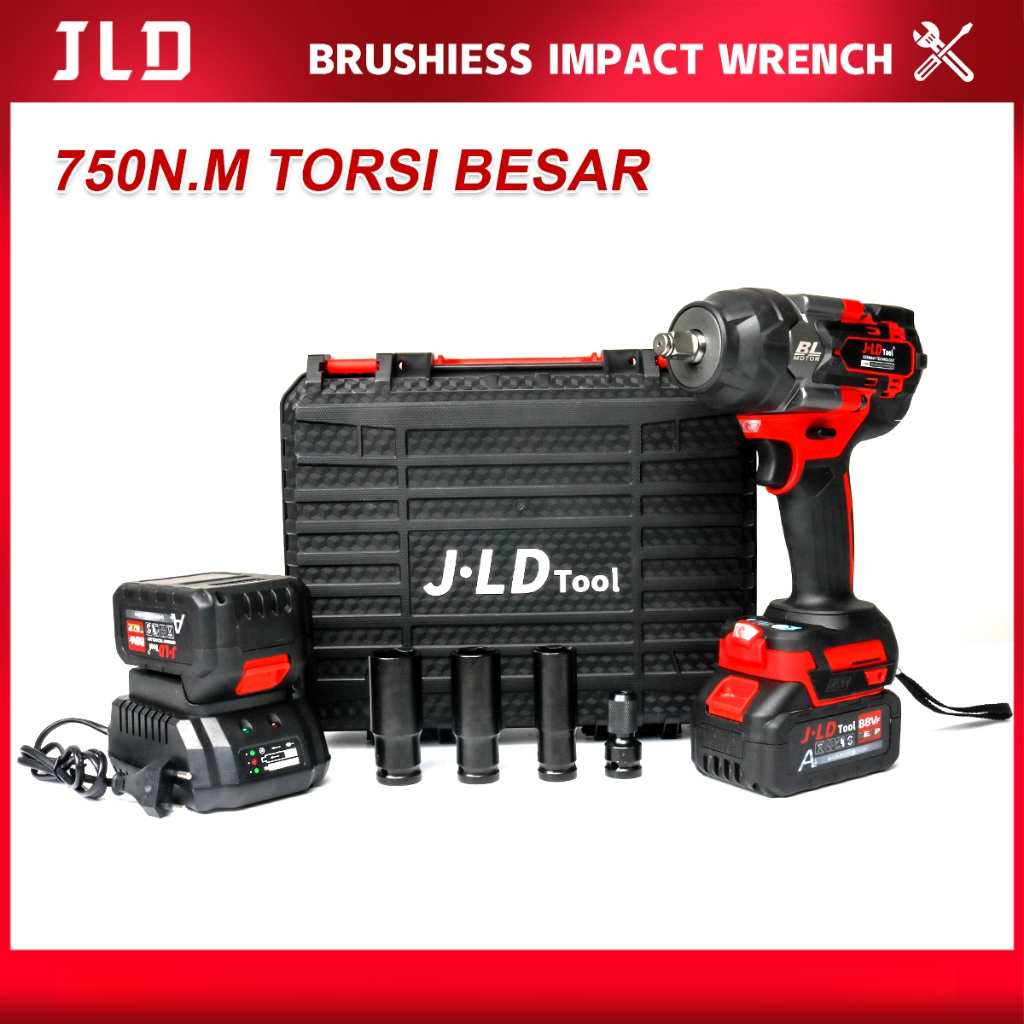 JLD 700N.M Impact Jumbo Torsi Besar Cordless Brushless 88 Baterai Mesin Bor Impact Wrench 3-Speeds Impek Buka Baut Motor