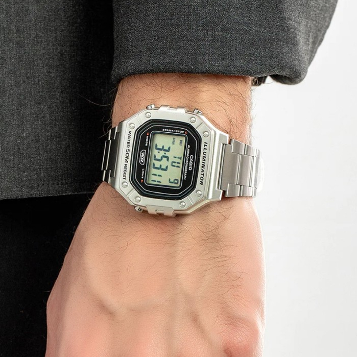 Jam Cowok Casio W-218HD-1AVDF Digital Stainless Rantai Silver