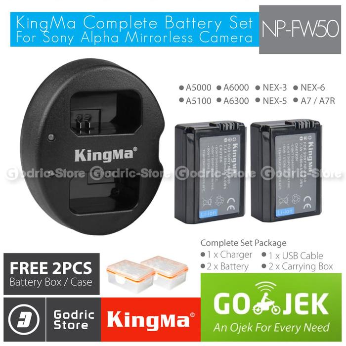 KINGMA PAKET COMPLETE BATTERY CHARGER SET NP-FW50 SONY ALPHA & NEX ETC