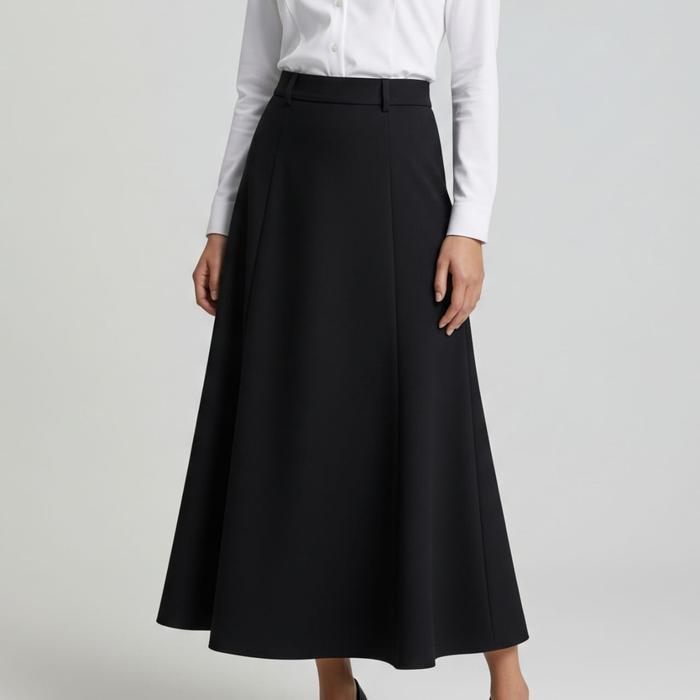 Rok Model A Line Wanita Kerja Formal Polos S-4Xl Karet Panjang Hitam Kantor Kain Semi Woll Rok Bahan Muat Bb 75Kg - Hita