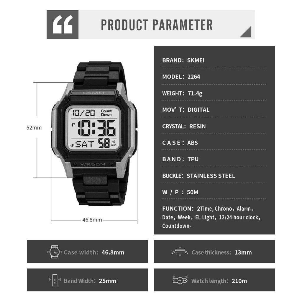 100 PERSEN Ori SKMEI 2264 Jam Tangan Pria Fashion Digital Tahan Air Menyelam