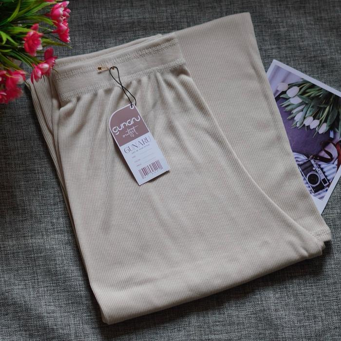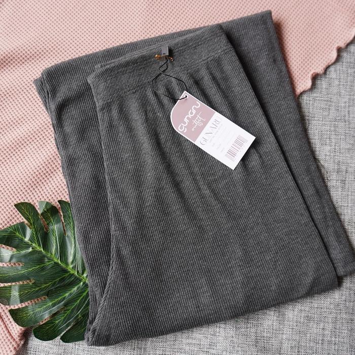 Celana Kulot Wanita Pinggang Full Karet Rib Rajut - Hitam