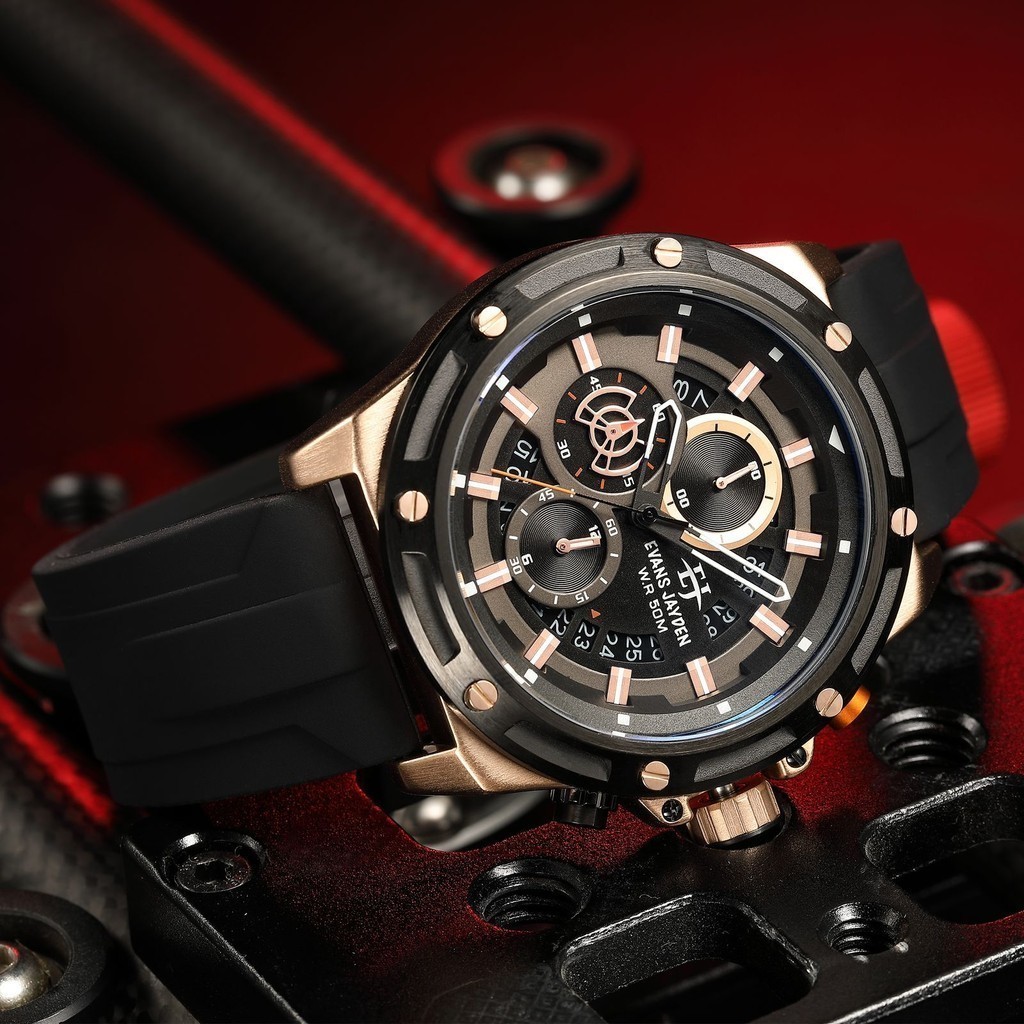 [ PROMO SAAT LIVE ] Evans Jayden Jam Tangan Pria 9597 Rubber Kaca Safir Chrono 5 ATM