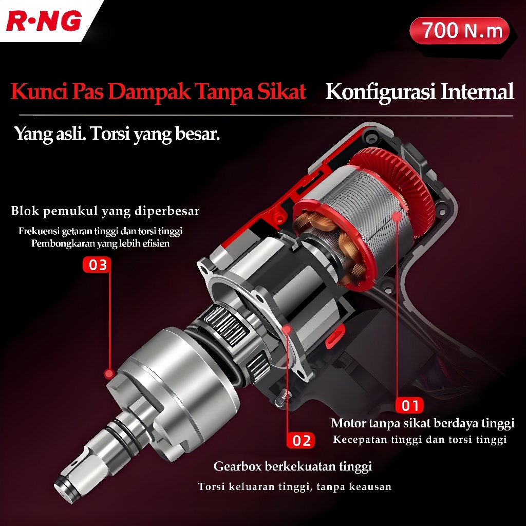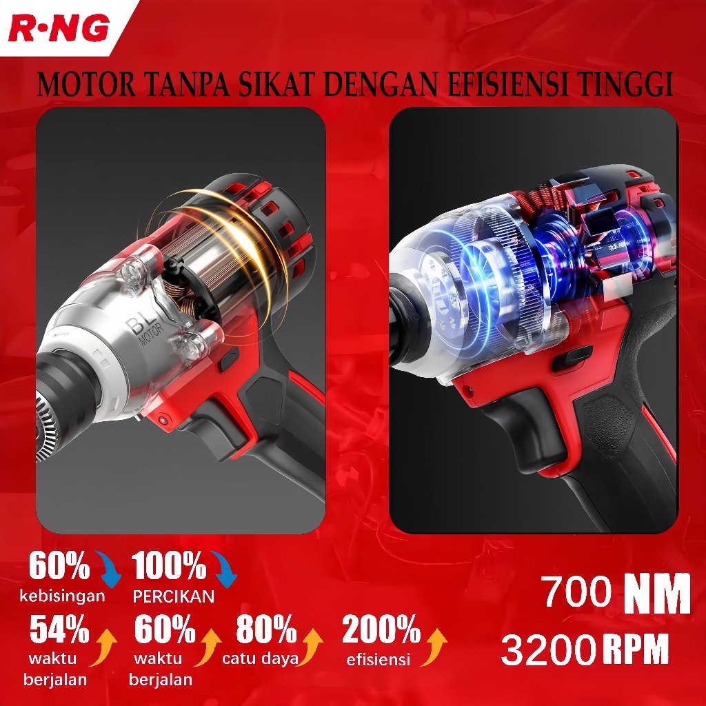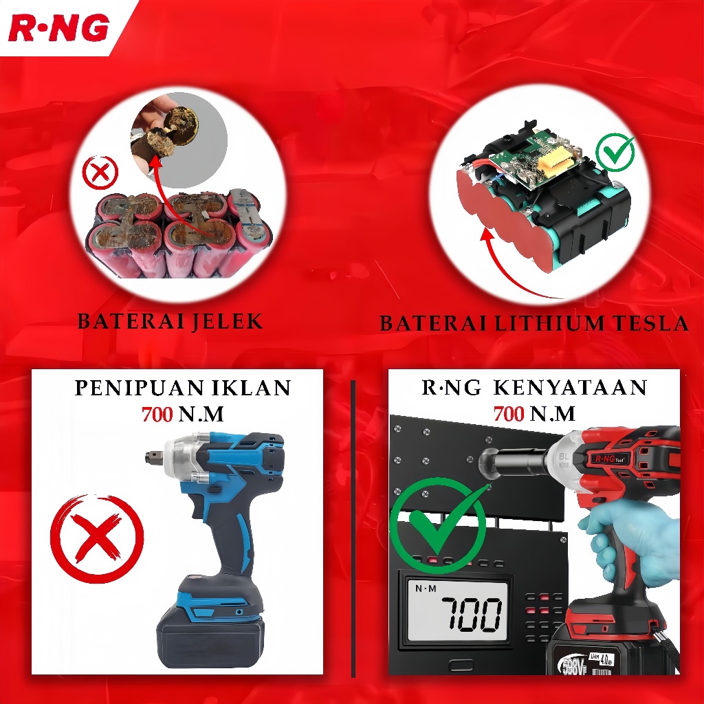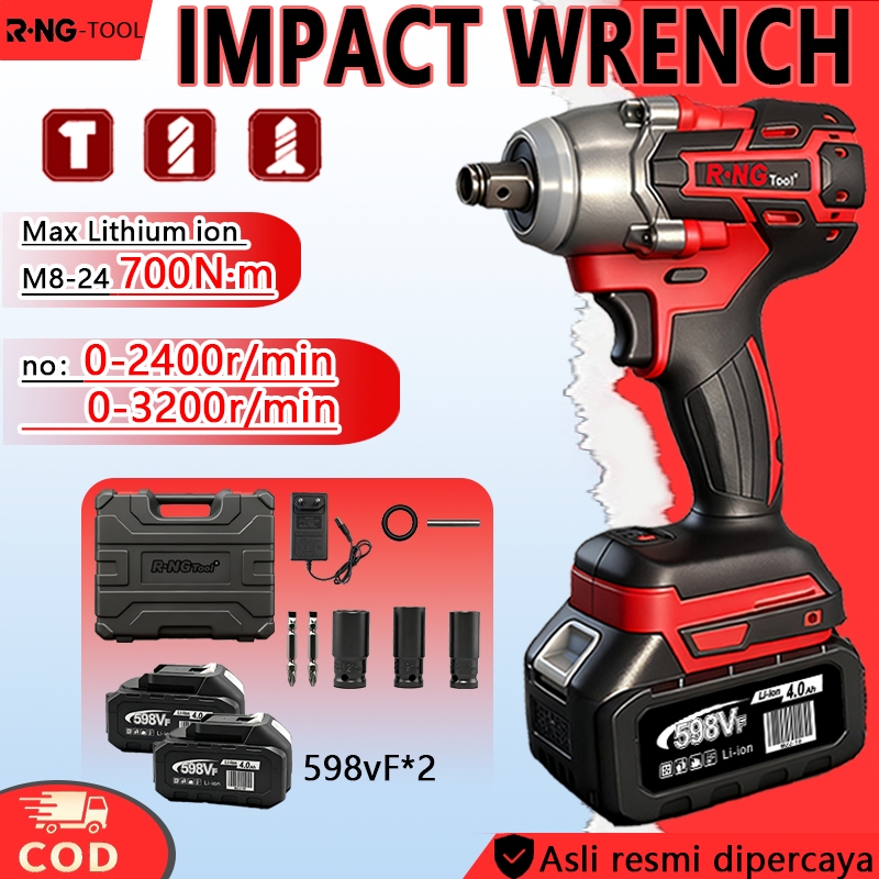 RNG Impact Wrench Impact Baterai 598V/398V Impact Cordless 700NM Mesin Impact - Dpm96