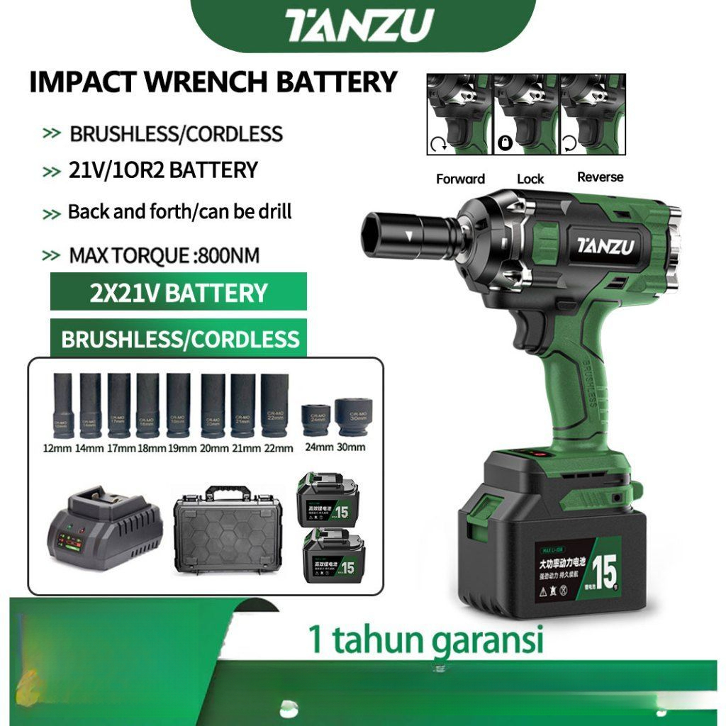 TANZU 330-800N.M High Torque Brushless Cordless 3 in 1 Impact Wrench Driver Drill - Dpm96