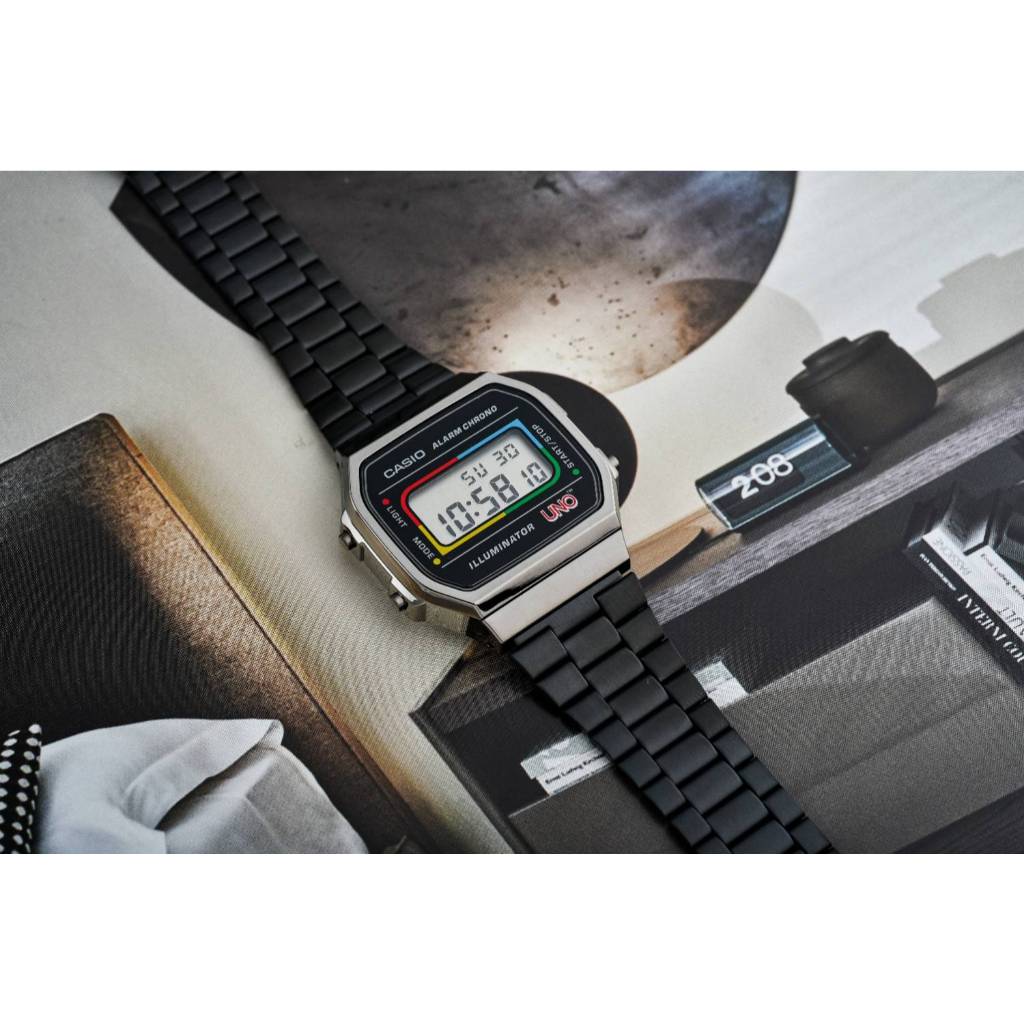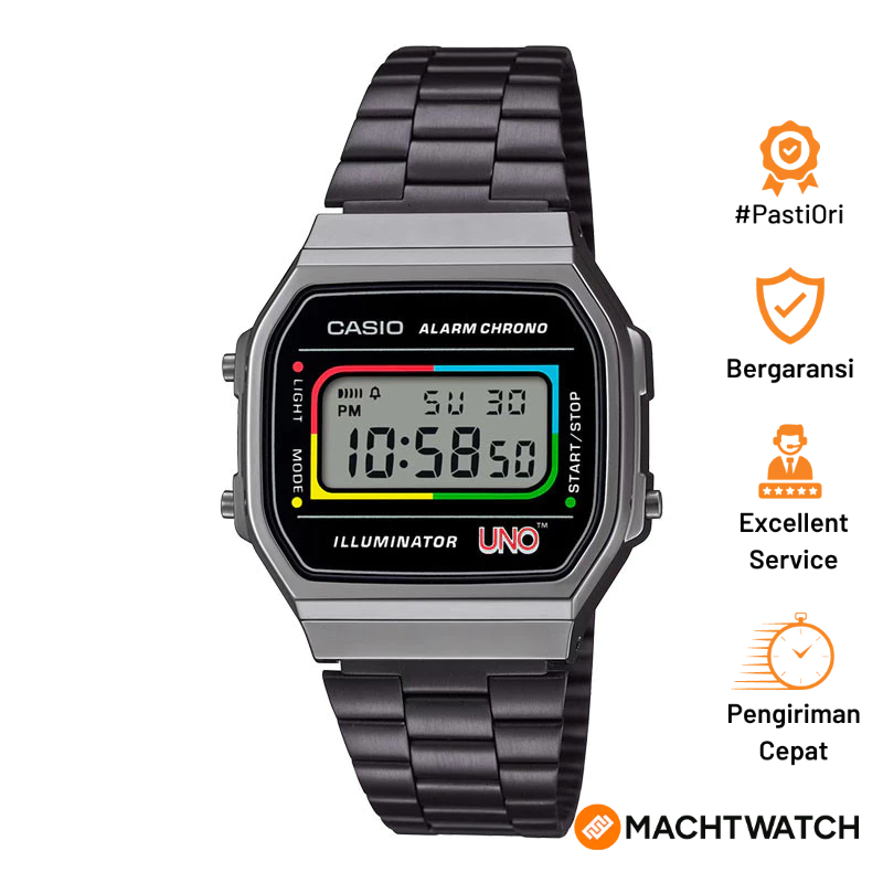 Jam Tangan Unisex Casio General A168WEUC-1ADR A168 UNO Collaboration Stainless Steel Band