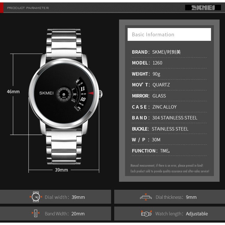 SKMEI 1260 Jam Tangan Pria bisa Wanita Analog Tali Stenlis MGOS