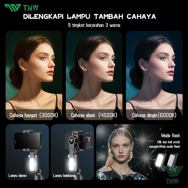 TNW Q19 AUTO FACE TRACKING GIMBAL STABILIZER 3 AXIS SMARTPHONE STABILIZER TONGSIS HP BLUETOOTH TRIPOD FILL LIGHT BLUETOO