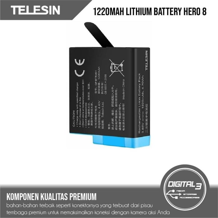 BATERAI GOPRO HERO 8 7 6 5 BLACK TELESIN BATTERY HERO8 BLACK 1220MAH