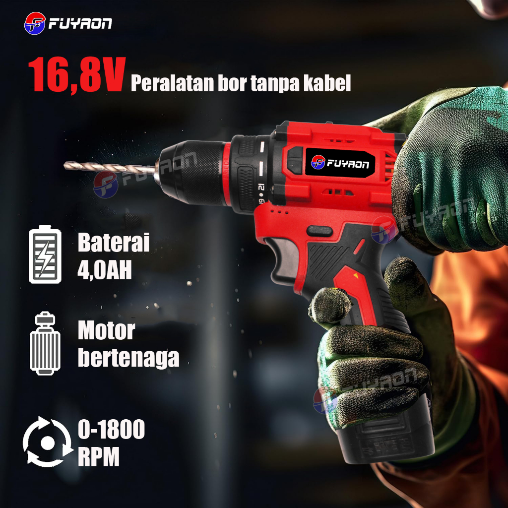 FUYAON Bor Listrik Motor Tanpa Sikat 2-In-1, Bor Listrik 16.8V Motor Tanpa Sikat Daya Tahan Super Bor Listrik Murah
