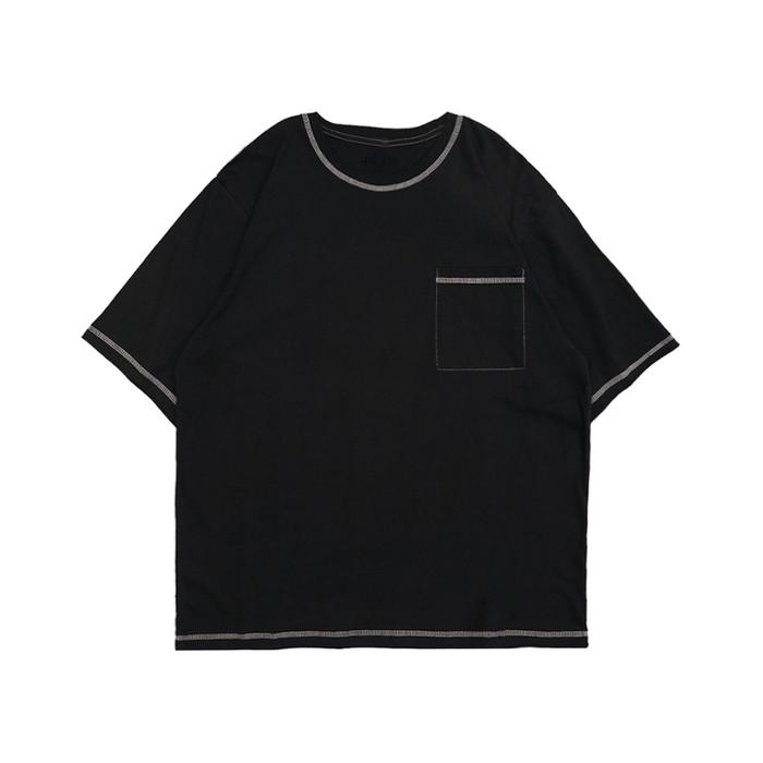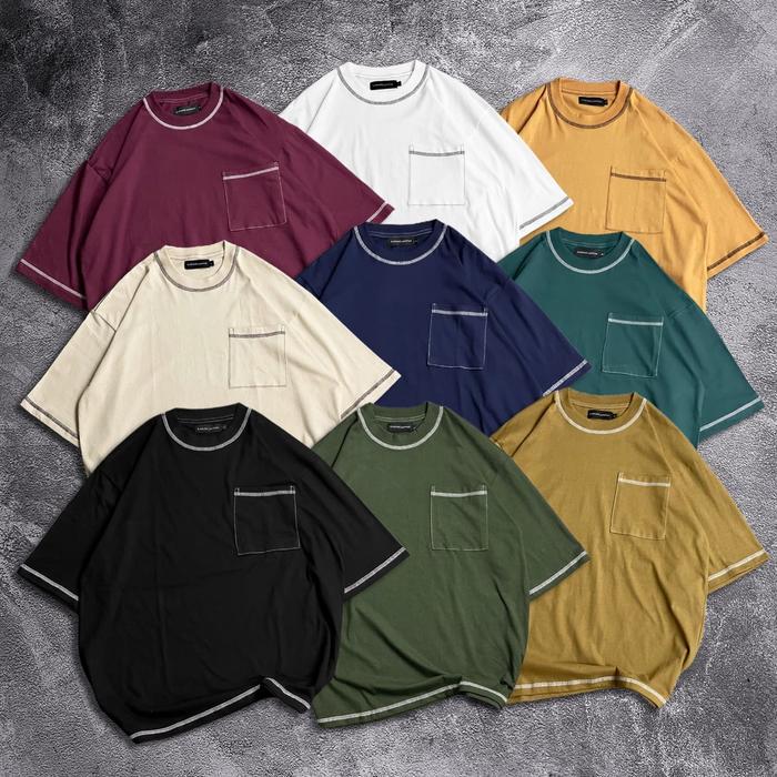 Tapaxco Kaos Oversize Polos Kece Cowok Pocket T-Shirt Unisex Pria Wanita Casual Local Original Combed Hitam Baju Bahan C