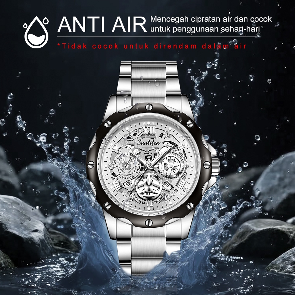 Sunlifex 8080 Jam Tangan Pria Date Anti Air Tali Stainless Steel Keren Kasual Sport Cowok New Watch