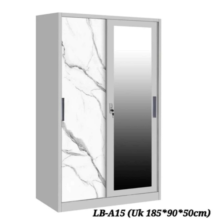 Lemari Baju Sliding Besi (PLAT TEBAL) - Lemari Baju Sliding - Almari Baju sliding - Lemari Baju 2 Pintu - Lemari baju Sliding kaca - Lemari Pakaian Besi Pintu Geser Murah