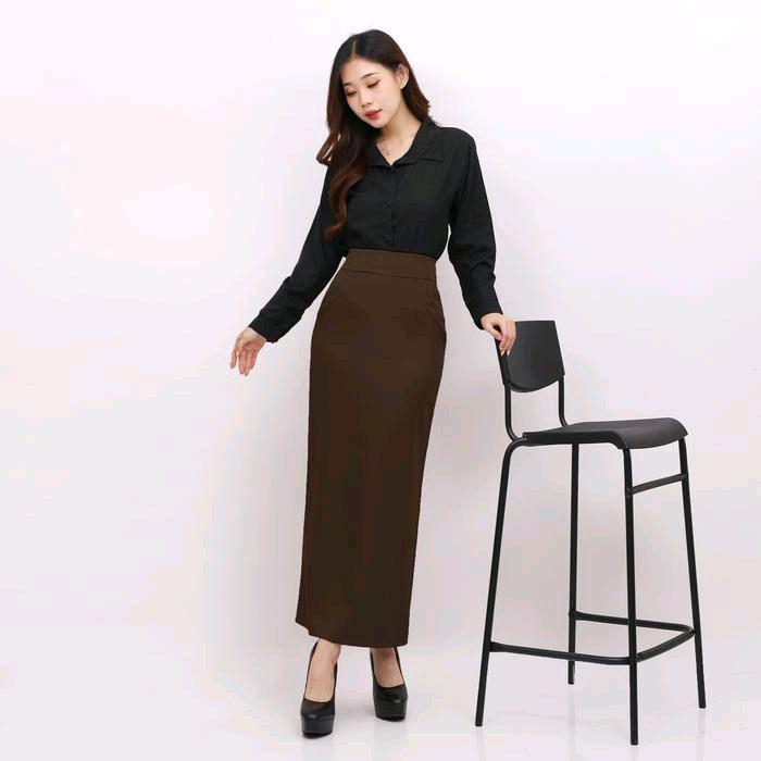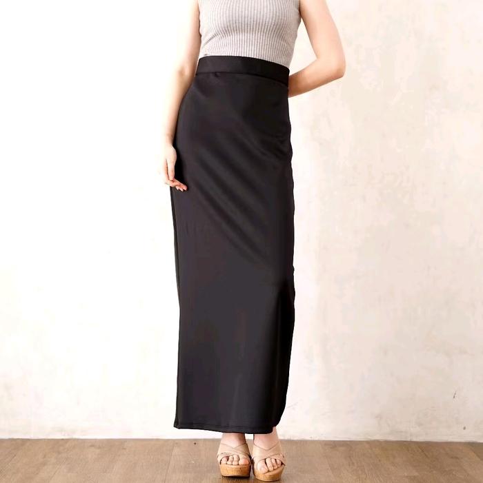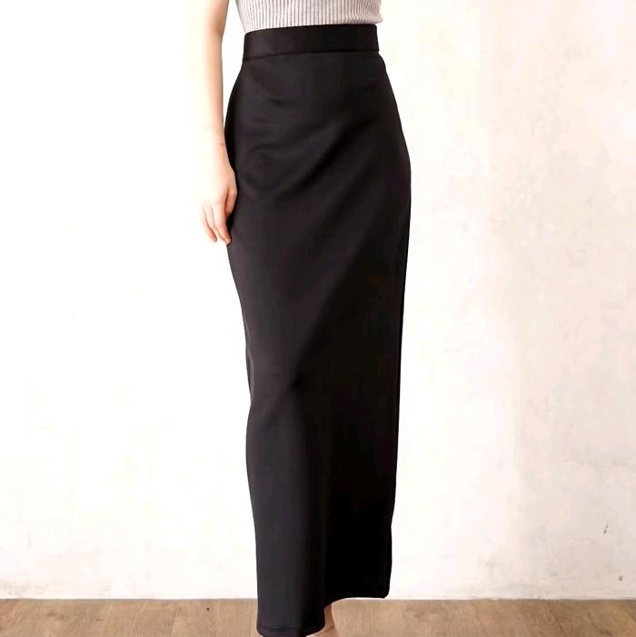 Rok Span Scuba / Rok Span Scuba Premium Wanita Kerja Basic Muslim Bawahan - Hitam, Standar