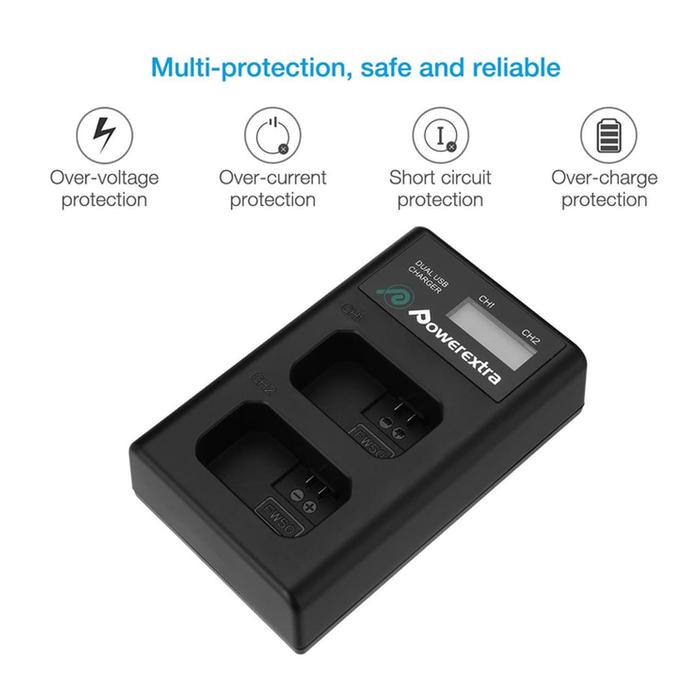 POWEREXTRA DUAL SMART CHARGER SONY NP-FW50 FOR A6000 A6300 A6400 A6500 A5100 A7 A7R A7S NEX