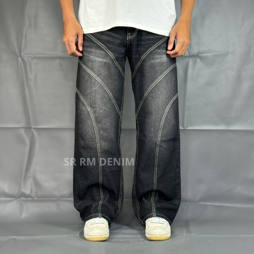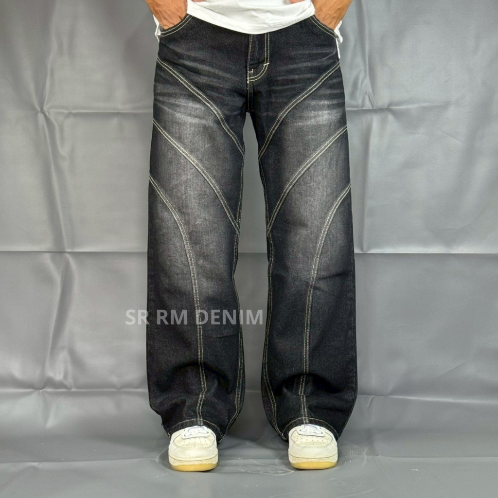 Celana Panjang Jeans Celana Denim Pria Celana Baggy Pria Pecah Pola Garis 3 Black Jazz Brownting Pria Dewasa