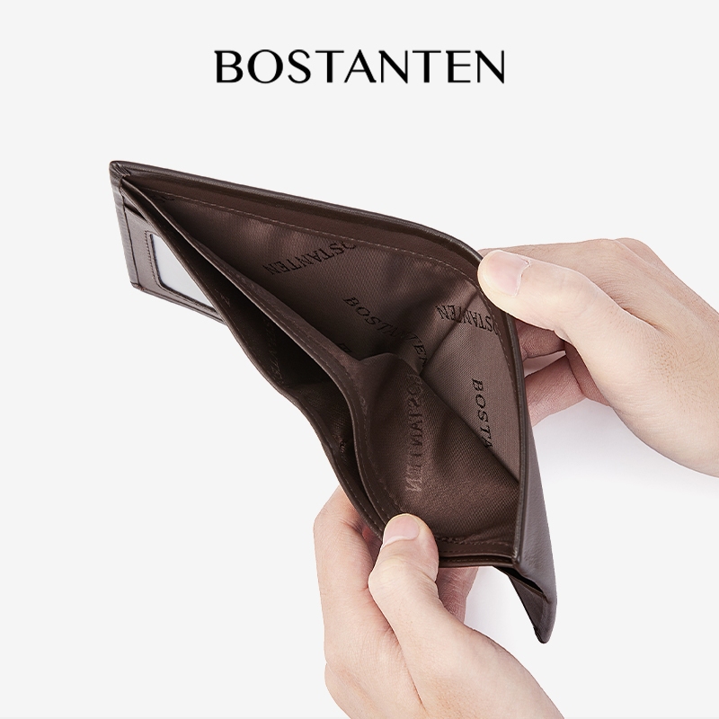 BOSTANTEN Dompet Kulit Pria Lipat Sapi Asli Original branded 100 PERSEN Hitam/Cokelat