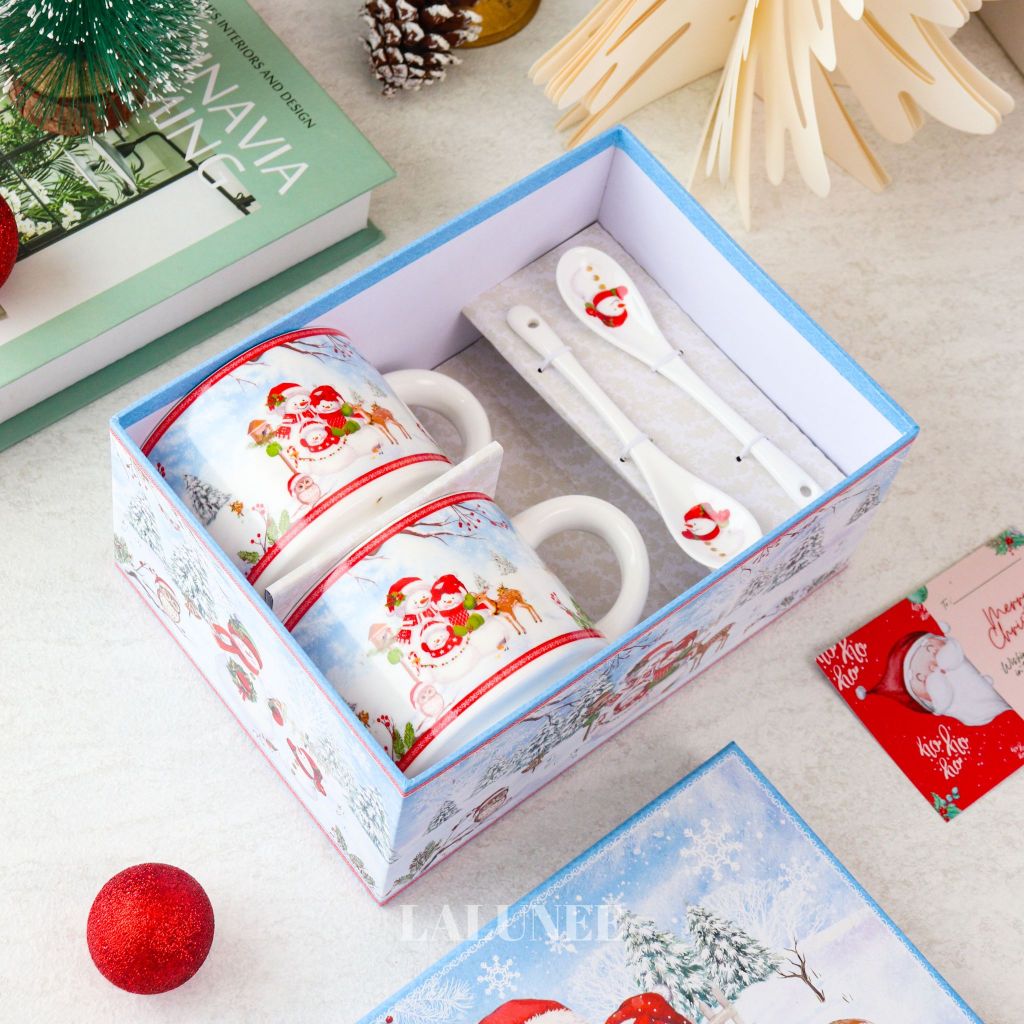 [Mall] HAMPERS NATAL CANGKIR SET CHRISTMAS GIFT SET ISI 2 GELAS 2 SENDOK HAMPERS SET MUG NATAL AESTHETIC MURAH