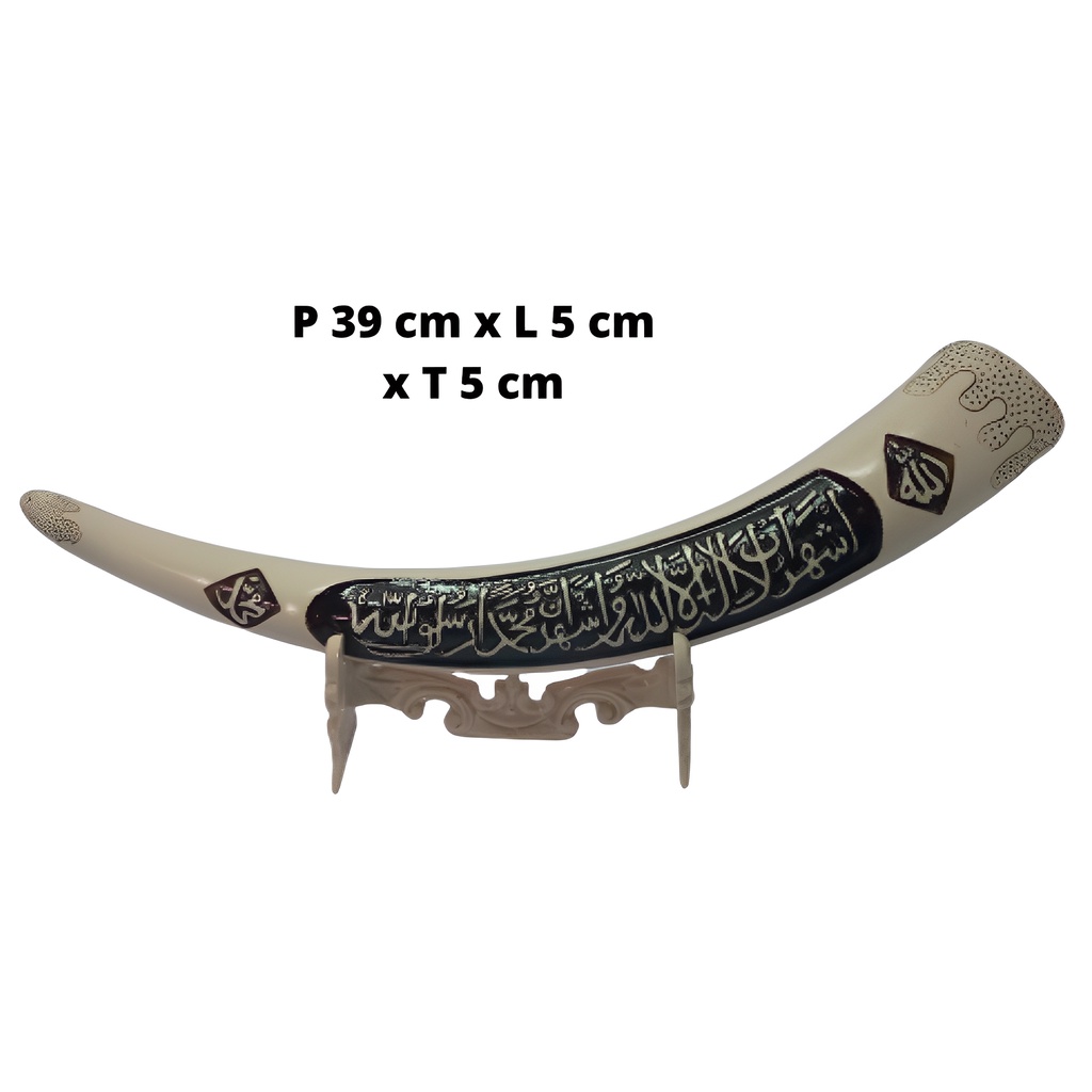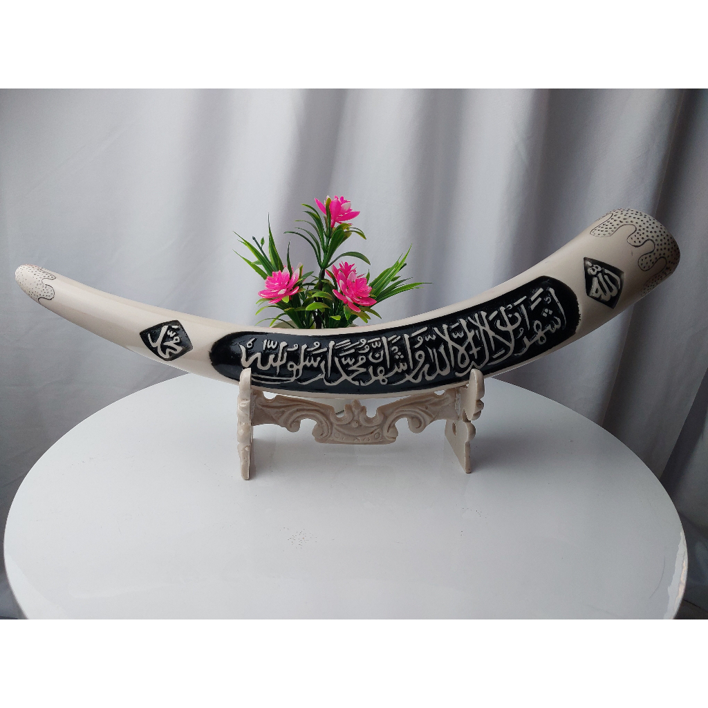 PAJANGAN MEJA Pajangan dinding hiasan meja lemari ka kaligrafi replika gading gajah kalimat syahadat putih