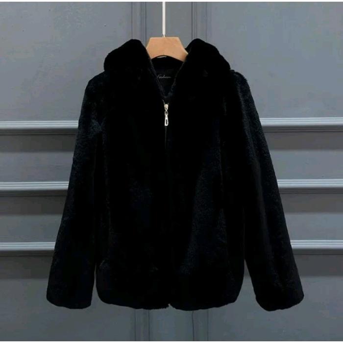 Jacket Bulu/Hoodi Bulu Kece Dewasa Pria Wanita Hitam Sweater Distro Tebal Unisex Casual Cowok Zipper Oblong Jumper Tang