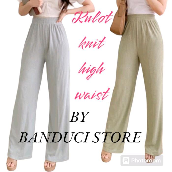Celana Kulot Wanita Highwaist Bahan Knit Premium - Hitam