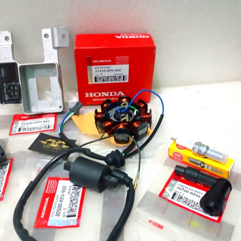 Paket Pengapian 6 Item Spull spul Assy set Honda Karisma Supra X 125 Kirana + CDI + + Kiprok Regulator + Busi + Tutup