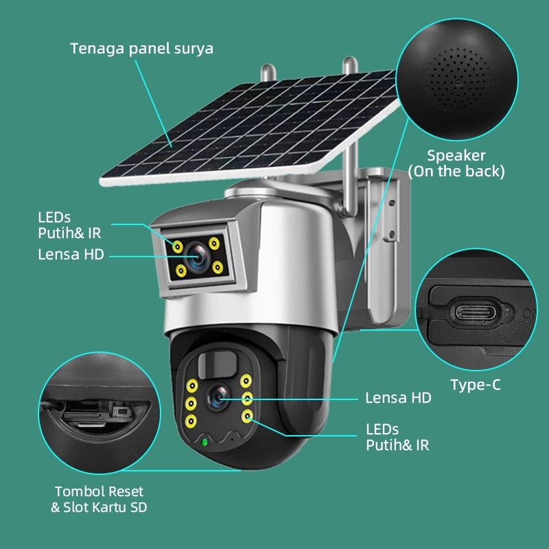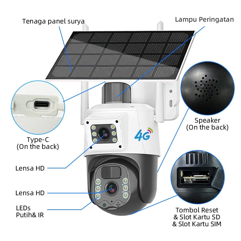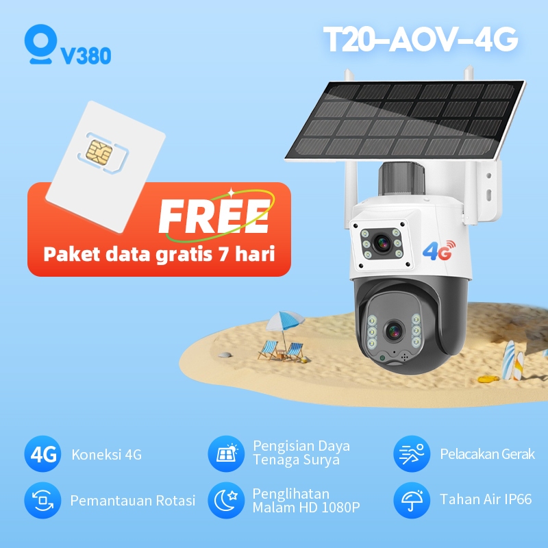 [Garansi Satu Tahun]V380 T2/G5A-4G Pro 4G Kamera Tenaga Surya Solar 3Mp Nirkabel Outdoor Tahan Air Cctv Ptz Camera Konek