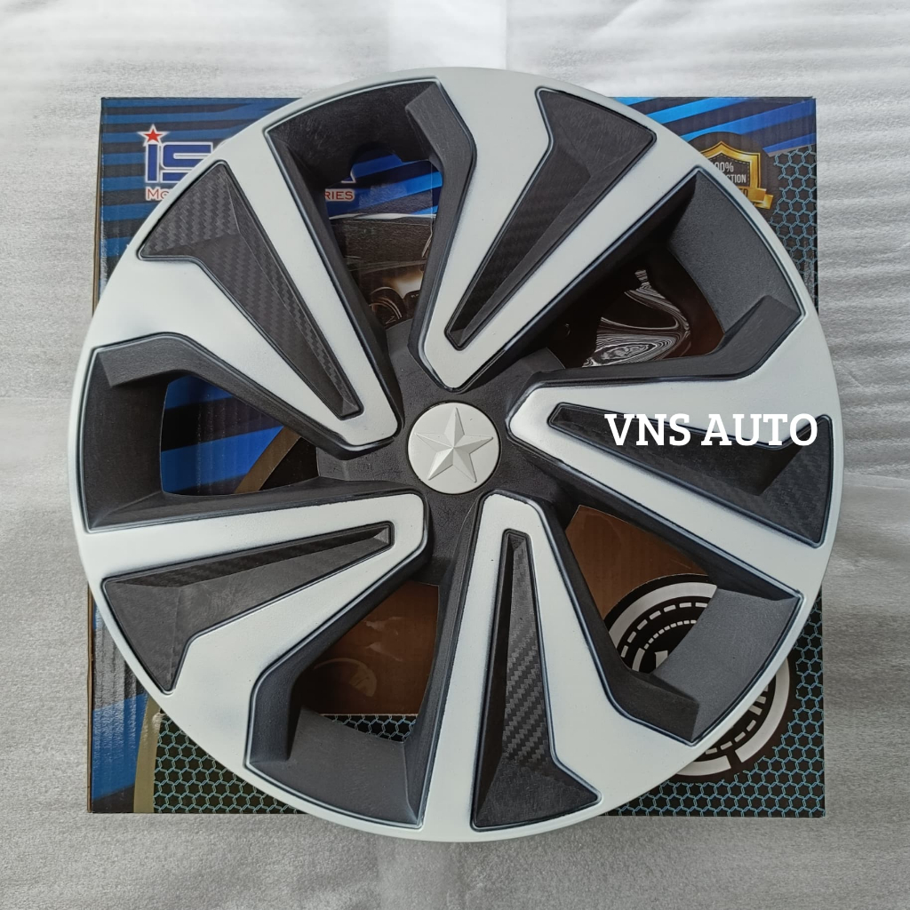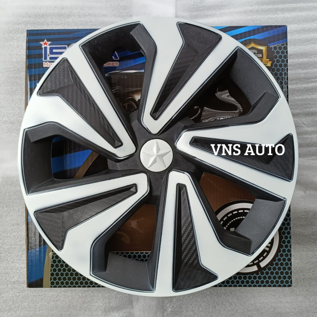 Isoka - Dop Roda Mobil Model Kv Ring 13 Dan 14 Inch Isi 1 Set 4 Pcs Putih Hitam