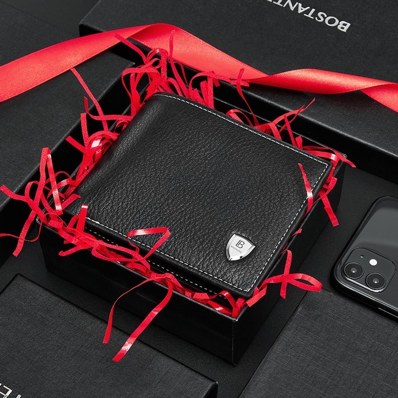 BOSTANTEN Dompet Lipat Pria Kulit PU Dengan Berbagai Motif Hitam/Coklat